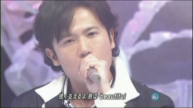 第二次的B部分的“GIVE U MY HEART”不是高的合音么?然后是慎吾君的solo+面把的二声部。那个合音,私觉得主要是由团里这三位声音最娇的爷负责的 笑