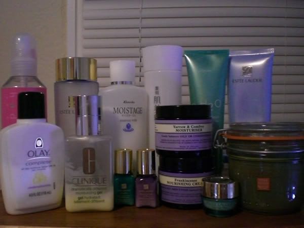 先贴点最近在用的,红梦,冬天太干,用红梦很滋润,本来霜用的是Sonia Rykiel水活力超能保湿乳霜 ,但发现这个天用不够,就买了资生堂BIO百优高保湿晚霜,配红梦用还不错。精华是SKII的美白精华,吸收蛮好的,白天用DIOR的活颜花蜜。听朋友买佰草集的润唇膏,实话说,非常非常的不好用,现在手上在用的是TBS的紫杨花的,隔离是一定要用的,选了C家的。眼霜用的HR的,吸收蛮好的,大效果还没看出来。