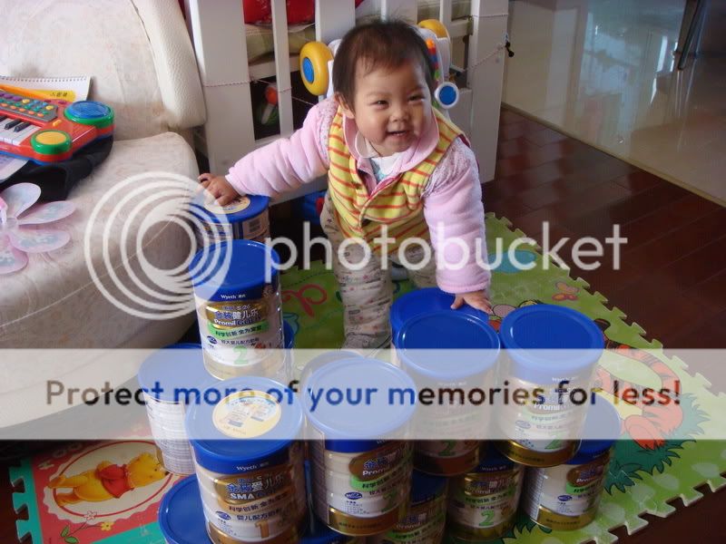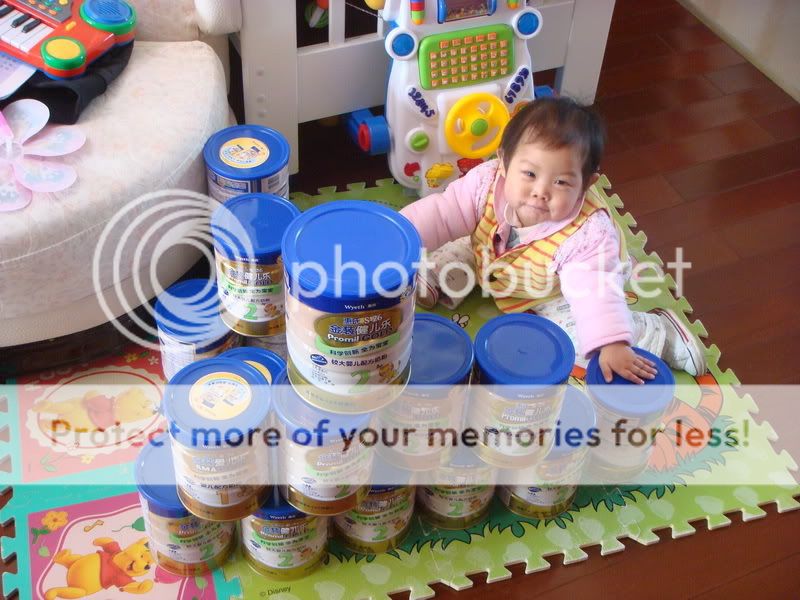 坐在惠氏奶粉堆里。。。。幸福^_^