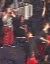 T1整个人摔坐在stage上笑
