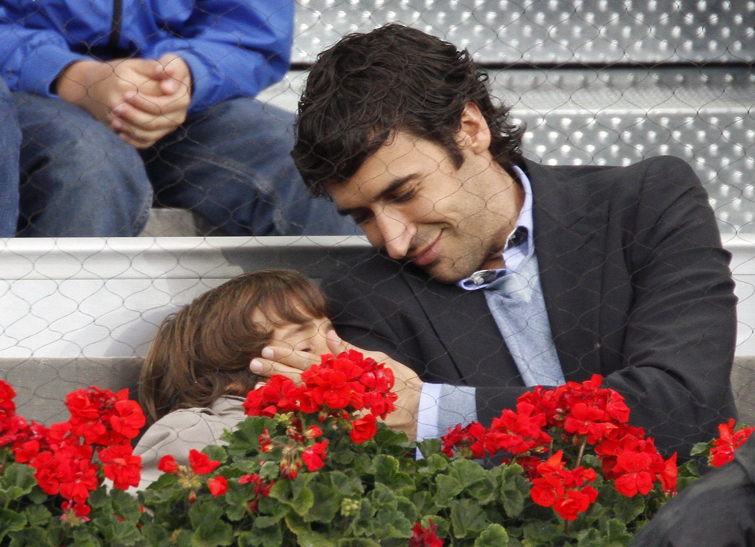 一个是他爸抱住的,还有一个是ZBZ推着的小车里面坐着个小孩= =
