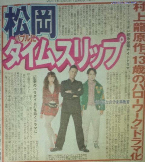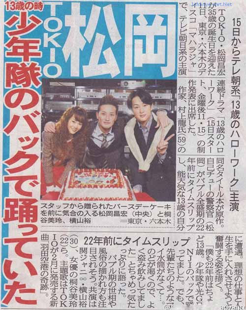 TOKIOの松岡昌宏くんが、来年1月スタートのテレ朝系連続ドラマ「13歳のハローワーク」(金曜23:15)で主演を務めることが発表されました。
