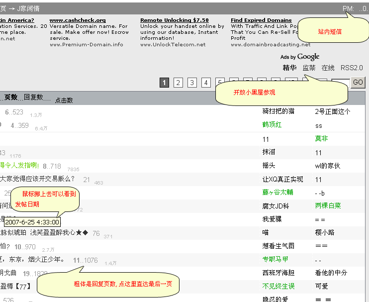 然后回复数和点击数表跟在帖子标题后面啊~~很难分辨~~还是分两列直直的显示的好~~~