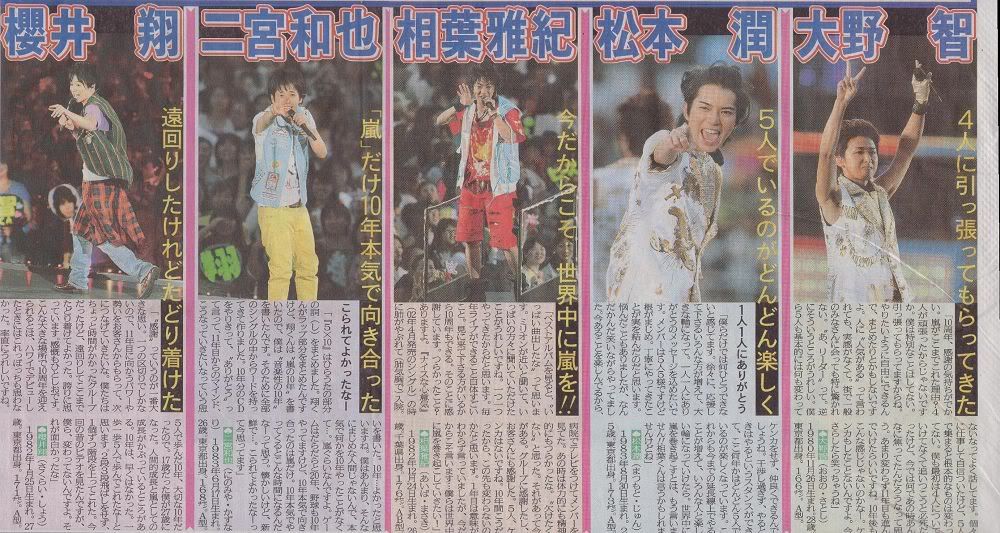 我们都是些很内敛的人,所以即使在countdown的live上也不怎么会被电视拍到。事实上,在我还没满18岁的2000年的countdown我是在家里看直播的,看着相叶kun和翔chan和leader三个人在唱A.RA.SHI,真的是在给他们加油呢,“加油!再显眼一点!”